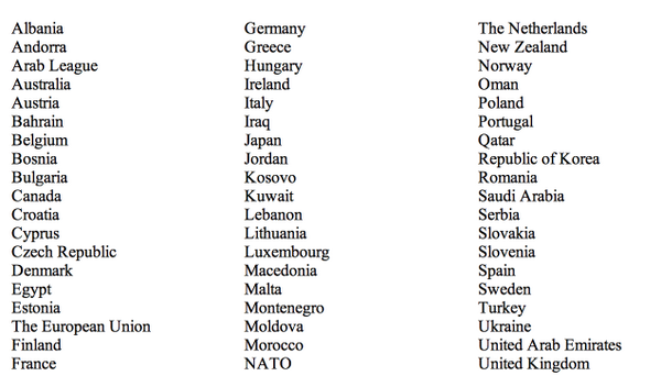Via @StateDept, a list of countries/partners in the anti-ISIS coalition in some capacity pic.twitter.com/dHldm8gefa