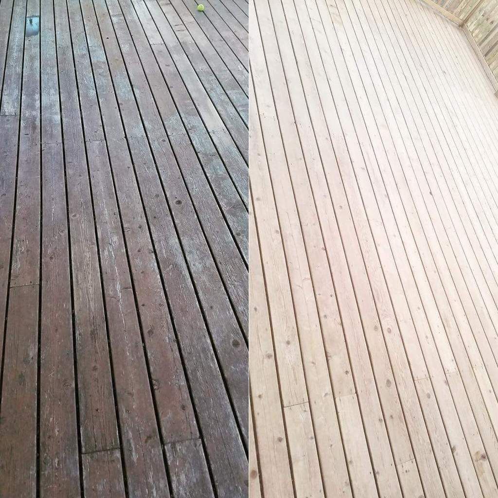 Stripped floor boards and sanded railings. Looking almost as good as new and ready for that new semi transparent stain.