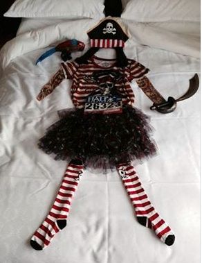 She usually takes a pic of her outfit spread out on a bed (she calls them "Flat Gina") for races with themes.